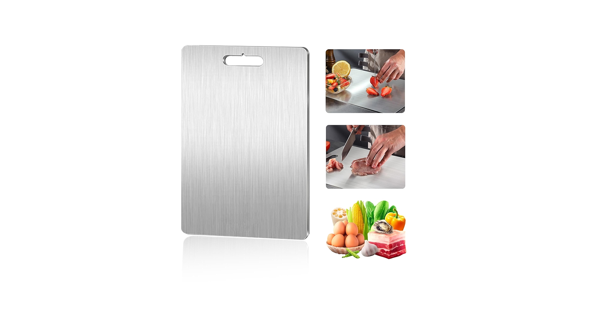 Additionally, it is non-porous, antibacterial, rust-resistant, and scratch-resistant, making it one of the most hygienic cutting surfaces available today.
